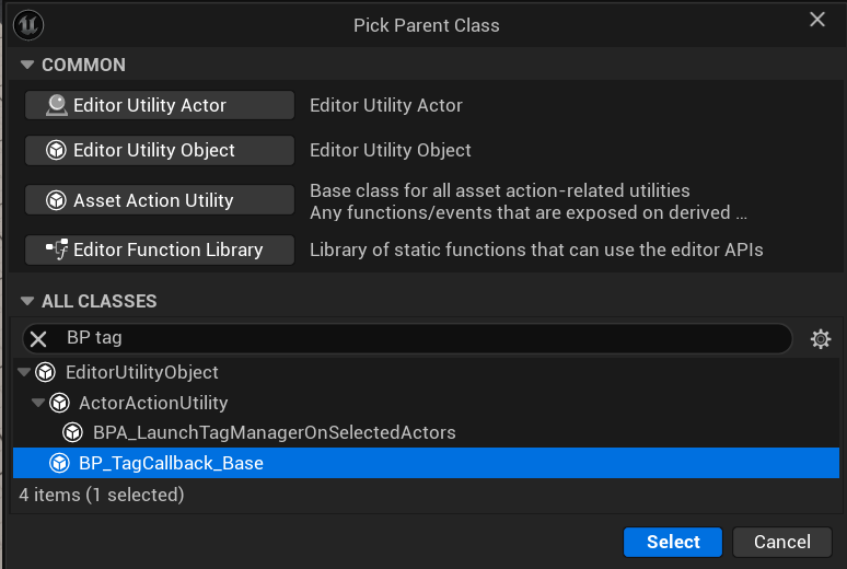 Tag: The struct of the tag with all its infos ( name, prefix, callback etc. ) TagLibrary: The library the assigned or removed tag was stored in. Actors: An array of UActor, the actors affected by the tag assignation or removal.