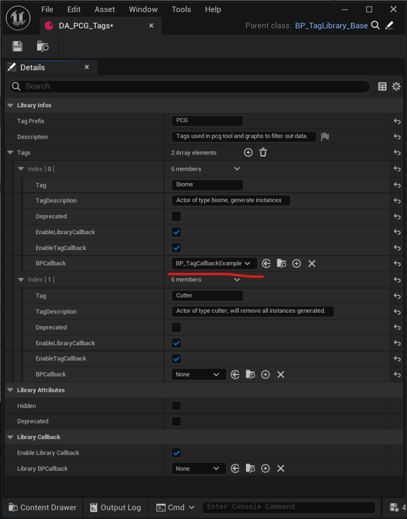 Now in the library, let’s assign that BP callback to the tag “PCG_Biome”: