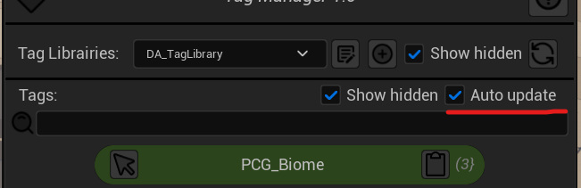 If you now save and refresh the tags widget, when you assign the tag “PCG_Biome” to an actor, you should see this in the output log:
